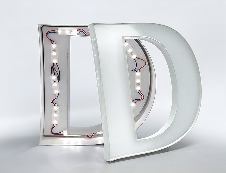 Lettre channel avec système d'éclairage au LED fabiquée à votre image. Un produit écoénergétique.Toutes dimensions